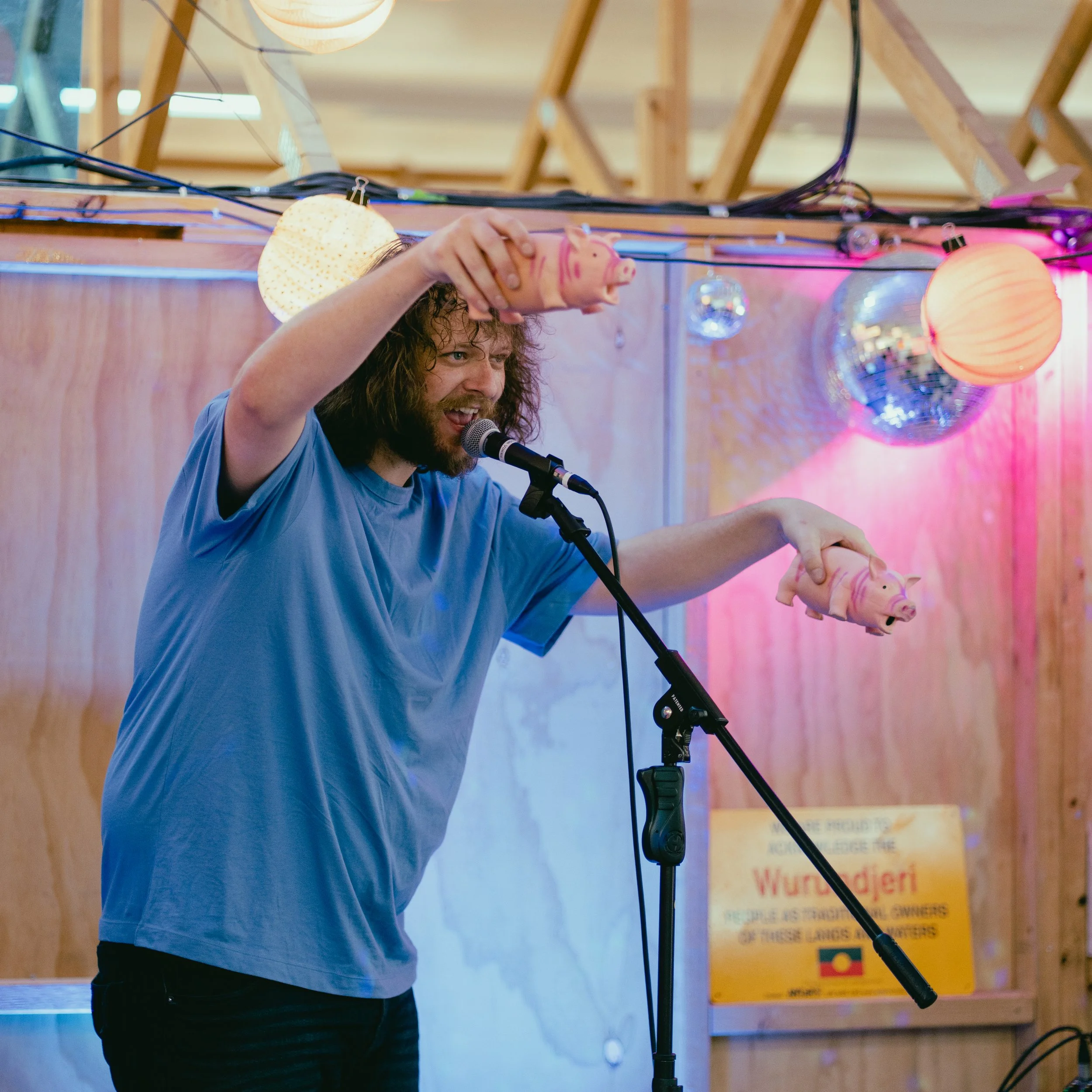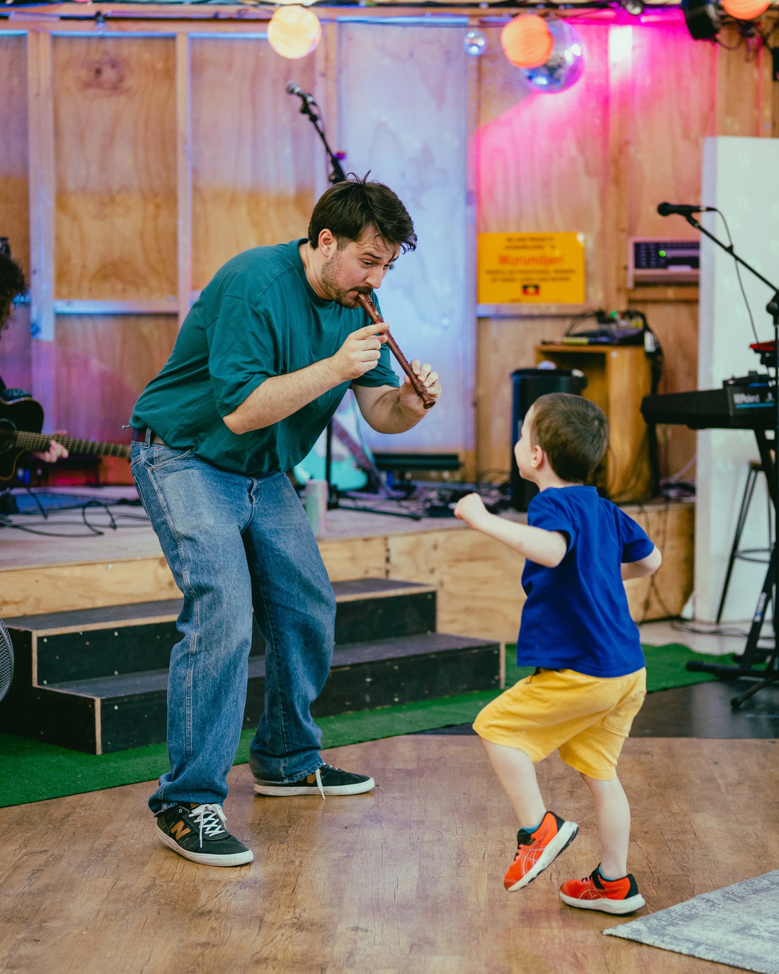 Each performance will be completely different; featuring lots of instruments, games, songs, puppets, dancing and special guests. Expect a stage full of instruments from guitars to drums to synths to squeaky dog toys - anything that makes sound can be music!